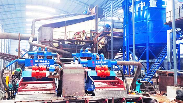 篩分過程中以水沖洗,后續環節不產生粉塵,環 保效果好;污水、泥渣進入壓濾機處理,成品泥餅含水率低,基本控制在25-30左右。清水回收循環利用,全程環 保閉環生產,無任何污染外排,達到綠色、安全、經濟生產。