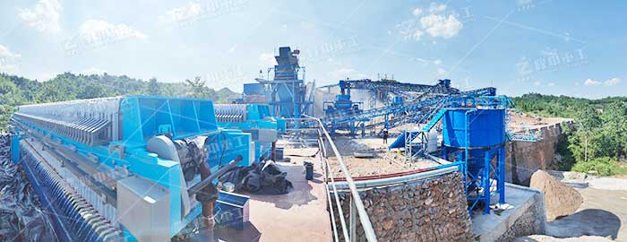 2、水洗砂后的砂石物料含水量過大,這時就需要石粉細沙回收機進行脫水處理,使得到的成品沙含水量減小,便于儲存和運輸,并且可以直接使用。